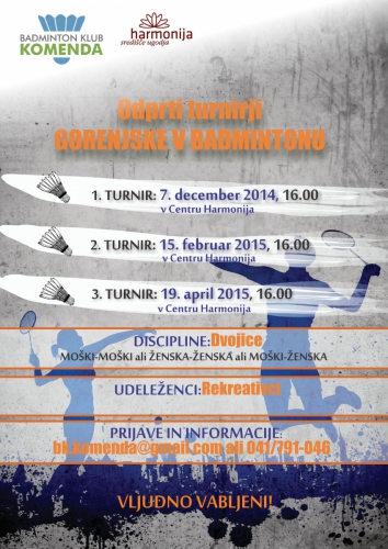 Ste se že prijavili na PRVI REKREATIVNI TURNIR GORENJSKE V BADMINTONU?