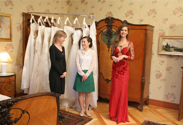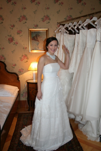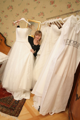 Pri izbiri njene poročne obleke ji je na podlagi bogatih izkušenj in strokovnega znanja svetovala ga. Irena Peterka iz poročnega butika Ena in edina v Domžalah. V enem najlepših salonov poročne in svečane mode ponujajo izredno bogato izbiro vrhunskih poročnih oblek priznanih evropskih oblikovalcev in seveda tudi njihovih lastnih kreacij, ki so šivane s precizno natančnostjo in z ljubeznijo do umetnosti kreiranja iz najkvalitetnejših materialov.