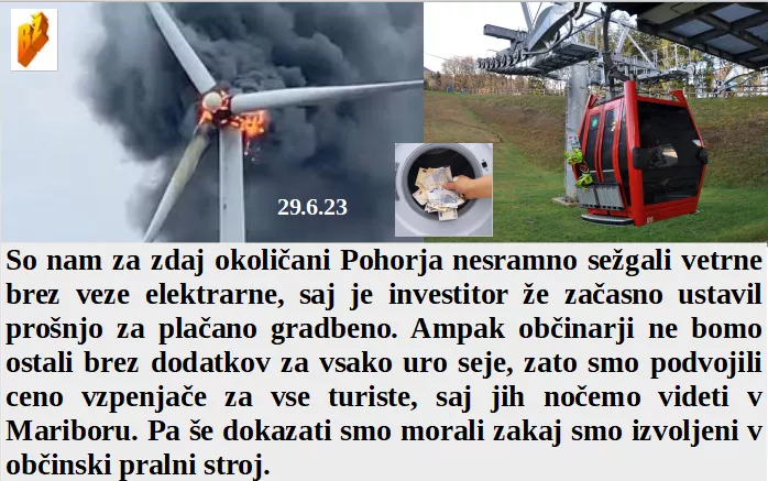 Kot svetovna nadorganizacija vam po 17 letih dovolimo odhod iz vaše klavnice. Laži podnebnih in gozdarskih znanstvenikov so tudi pri nas zelo pomembne. Bo čez mesece edina parada le še v Hollywoodu. Slovenska vojska pa res ni namenjena branjenju naše domovine. Ja hudiča pa nam ja ne bodo uničili vetrnic na Pohorju?