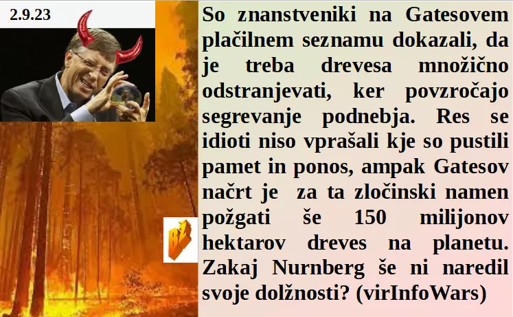 Večina ne dojema, kako lepo smo nekoč živeli, brez oblastniškega nasilja. Sirene so opoldne zvonile, a politiki so še vedno tukaj. In kdo še verjame, da vlada dela za nas? Je plačal uničenje že 150 milijonov hektarov gozdov za lažno reševanje podnebne krize. Medtem pa plačani piloti uničujejo zemljo in ljudi!