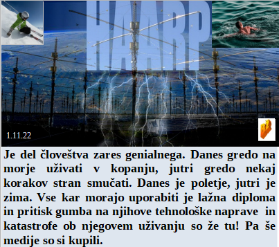 Tehnologija danes vročino, jutri pa že sneg. Vse na You tube, kar je povezano z resnico o kovidu, bomo brisali. Že dolgo je načrtovano razbitje Rusije in njen vstop pod Ameriško oblast. Kdo ve zakaj se je pri nas povečala smrtnost in staranje zmanjšalo?
