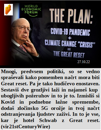 Je tako enostaven načrt Great Reset, saj ga je ustvarila le peščica zase. Je treba še kaj dodatnih razlag, ko slišiš, da je plača v gostinstvu bruto 529,20€? Ko na veliko prodajaš hitro hrano moraš biti na tesno povezan s 5G. Skrbi za zdravje pa je po petem cepljenju doživela lažni kovid. Del vsake vojne so tudi spremembe imen ulic.