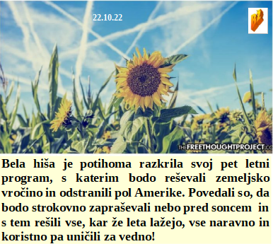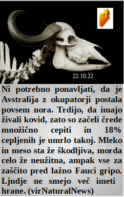 Bolj neumne laži vsak dan, svet pa normalen? Še dva nova natega pa kar preko goriva. V Avstraliji tudi živali dobile kovid, da jih cepijo in te množično umirajo! Živalska smrdljivka moteča, politična komaj. Ker je v nori Kanadi umrlo ogromno mladih zdravnikov zdaj predlagajo, da se zanje ukine obvezno cepljenje. Bela hiša razkrila svoj program zastrupljanja z neba.