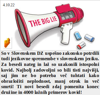 Najini otroci imajo mati in očeta in nikoli nama ne bodo rekli starš 1 ali starš 2. Moraš danes jezikovne spremembe v slovenščini potrjevati v DZ. Žal je danes znanost le še satanistična zabava brez podlage in dokazov. Izgubljeni so vsi dokazi, da narava spreminja podnebje, zato zahtevajo znanstveniki najstrožje ukrepe proti tistim, ki to vedo.
