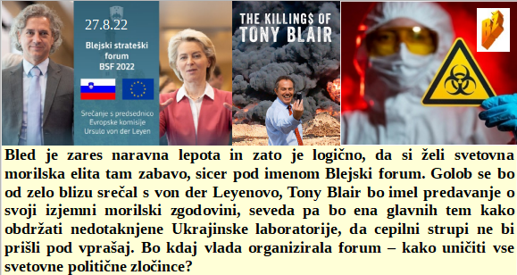 Blejski forum o morijah po svetu in načrtih zanje. Kmalu ZDA ne bodo mogle več same izdelovati atomskih bomb, ker jim je skoraj zmanjkalo urana. Vsaj ena redkih oseb, ki je povedala, da morajo biti vsi, ki zlorabljajo kovid na sojenju v Nurnberg zaradi zločinov. Kdo jih bo pobil več in pri tem več zaslužil? Moderna ali Pfizer?