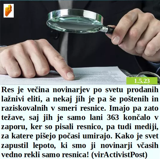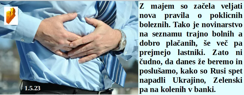 Smo od gospodarjev dobili dovolilnice in v čredi odpotovali zapraviti svojo revščino meseca aprila. Nova pravila o poklicnih boleznih zelo ustrezajo večini novinarjev. Ko si s polnim trebuhom in ostalo praznino je prav, da vržeš vse iz sebe. Žal je na svetu celo nekaj poštenih novinarjev, ki pa trpijo za vse.