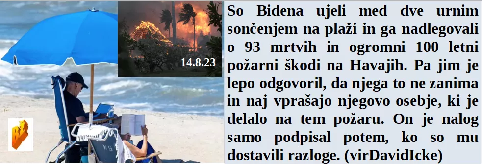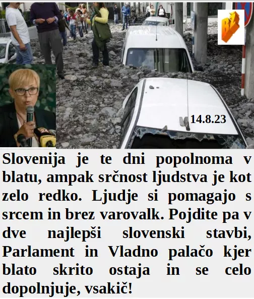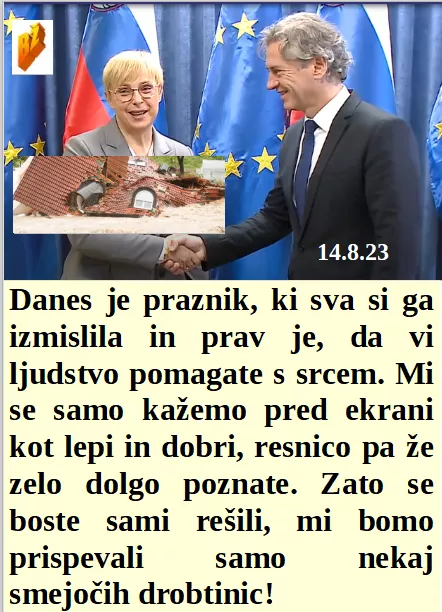 Srčni Slovenci pomagajo ljudem v blatu, tega pa iz dveh stavb v Ljubljani ne odnašajo. Ker je danes populistični praznik se politiki kažejo pred ekrani in ne na poplavljenem področju kot delavci. Med sončenjem Biden ni hotel govoriti o Havajih. Zmajevska kopija pa zadovoljna, ker že spet naša oblast laže.