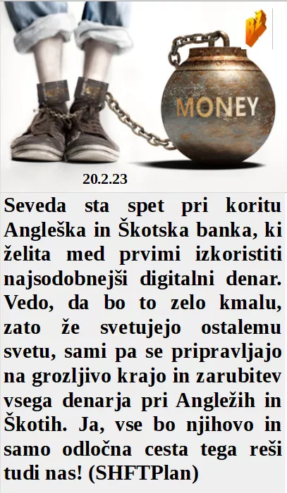 Hočejo bankirji z digitalnim denarjem dobiti le še sužnje in jim vse pokrasti. Zelo sem ti hvaležna za pomoč, zdaj bom tudi uradno lahko cele dneve igrala bovling. Obisk Slovenije je le zaradi zagotavljanja dovolj vojaškega denarja za Bruseljske zločine. So UFO bitja po nekaj stoletjih odkrila tudi Zemljo. Spletka ob javni TV je zanimiva tudi za sodišče.