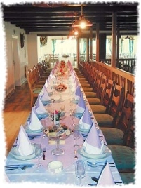 Balkon s čudovito leseno hrastovo ograjo s pogledom na plesišče in barski šank, kjer vas prijazno osebje hiše postreže z Prleškimi dobrotami domačih kuharskih mojstrov.