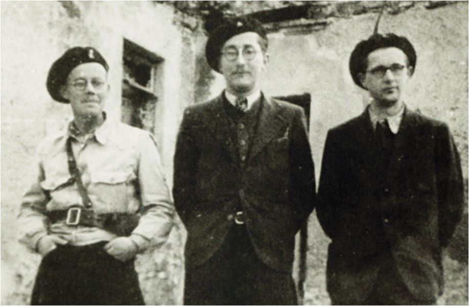 France Balantič (skrajno desno), takrat še vaški stražar, leta 1943 v Grahovem. Konec tega leta je v Grahovem umrl kot domobranec.