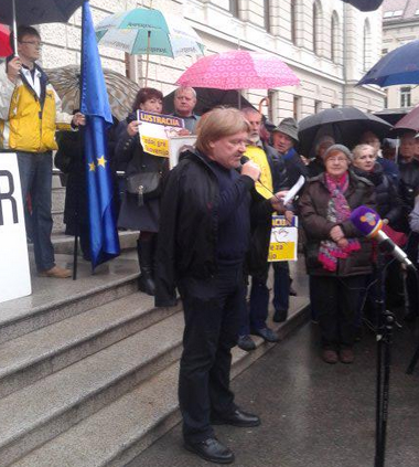 Zato nadaljujmo s protesti, ker se danes in tukaj ne borimo samo za politične svobode, za človeško dostojanstvo in človekove pravice, za demokracijo in druge vrednote naše osamosvojitve, ne borimo se samo za čast in obraz naših generacij, temveč tudi za prihodnost tistih, ki bodo nekoč živeli in imeli radi svojo domovino med Alpami in Jadranom.