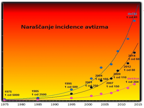 In koliko je teh otrok, ki potrebujejo pomoč? Danes se rodi že vsak deseti fantek, ki bo čez par let pristal nekje na spektru avtizma. To lahko sklepamo iz krivulje, ki se že dve desetletji strmo dviga in nas opozarja na neznosno lahkost, s katero se zdravstvo loteva problematike avtizma. Marca 2014 so v ZDA objavili podatek za generacijo rojeno v letu 2002 – avtizem so ugotovili že pri 1 od 68 otrok! Ker je avtizem pet krat pogostejši med fantki, to pomeni, da ima avtizem 1 od 41 fantkov in 1 od 204 deklic. Če torej sledimo krivulji v leto 2015, pridemo do grozljivih številk 1 od 10 dečkov in 1 od 50 deklic! To je prava epidemija avtizma! In kaj pravi na to država?