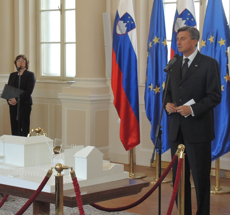 Na posvetu o vlogi umetnosti v spravnem procesu, ki smo ga na Socialni akademiji organizirali pred dobrim letom, je bil danes predstavljen spomenik že predmet pogovora. Z več strani smo takrat dobili priznanje, da smo odprli prostor za razpravo o tem spomeniku, čeravno je imela ta razprava tudi svoje omejitve in pomanjkljivost. Glavni očitki na račun predlaganega spomenika na tistem posvetu so bili, da ponazarja razdeljenost in ločenost (dr. Spomenka Hribar), da ni nastal skozi dialog (dr. Leon Debevec) in da gre za kabinetno rešitev (dr. Igor Škamperle). Na današnji predstavitvi pri predsedniku republike je ozadje izbora prisotnim pojasnil Aleksander Ostan, predsednik natečajne komisije za izbor spomenika, samo idejno zasnovo izbrane rešitve pa je osvetlil vodja skupine avtorjev Rok Žnidaršič. Oba sta se dotaknila prvega očitka in ga skušala ovreči z utemeljitvijo o dihotomiji, dvojnosti, ki je prisotna v svetu, filozofiji … To je sicer res, ampak po mojem mnenju bo večina v predlaganem spomeniku najverjetneje videla prej negativne kot pozitivne konotacije te dvojnosti, sploh če o njem pred postavitvijo ne bo potekal širši dialog.