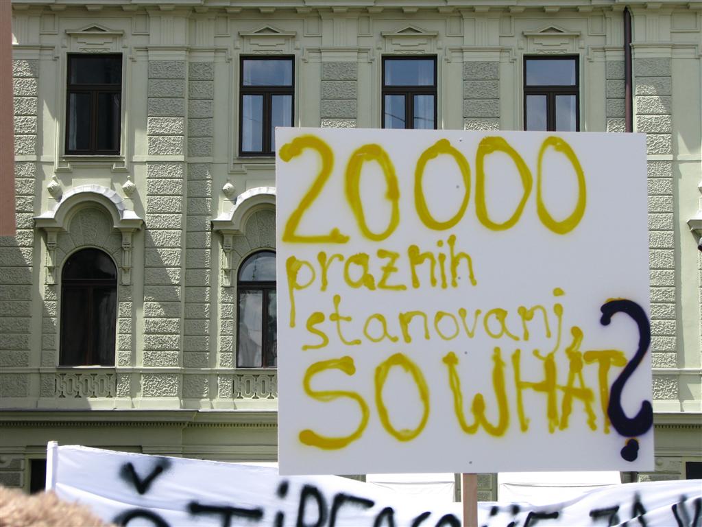 Splošno znano je, da v Sloveniji primanjkuje vsaj deset tisoč stanovanj in prav toliko postelj za starejše državljane. Trg s strani države regulira le birokracija v okvirih gradbene zakonodaje in urejanja prostora, vse drugo je prepuščeno pohlepu, ki se odraža v nerazumnih cenah in dvomljivi kakovosti materialov, sposobnosti arhitektov kot zakotnih risarjev. Prosti trg s kratkotrajnimi namestitvami za turiste je že tako uničen trg nepremičnin v nekaterih delih države zravnal do temeljev.