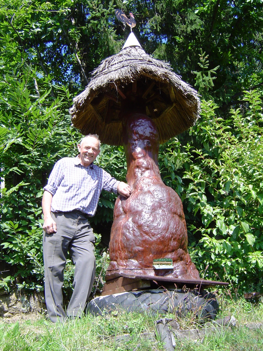 Naš gospodar in praporščak Jakob pred svojim naravnim čebelnjakom