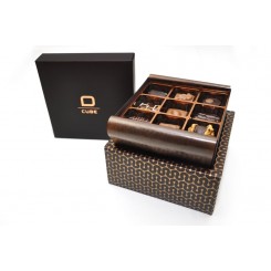 Izbor naših najboljših pralinejev v črni, mlečni in beli čokoladi. Moderno oblikovana bomboniera, čistih linij z retro pridihom vam bo zagotovila tako estetski kot gurmanski užitek. D Cube bomboniera je prava kocka užitka. Vsi izdelki Čokoladnega Ateljeja Dobnik so narejeni iz najboljše belgijske čokolade, brez dodanih konezrvansov, umetnih barvil ali umetnih okusov. Ročna izdelava nam omogoča uporabo svežih sestavin, kar zagotavlja polnost okusov.
