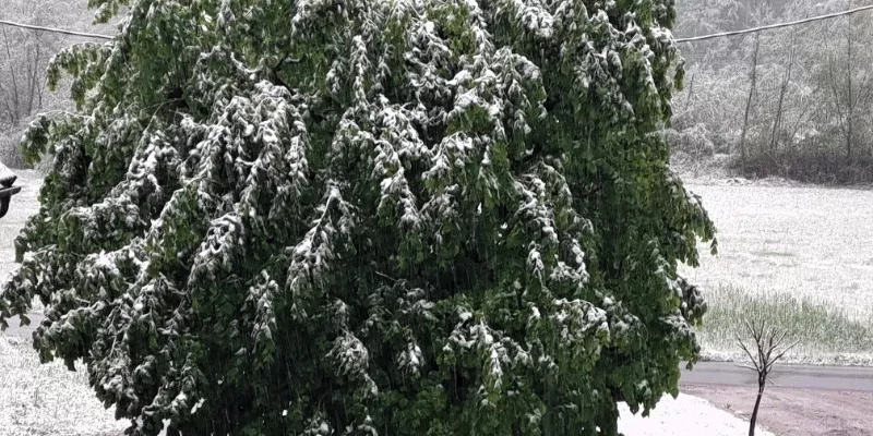 V večjem delu države danes sneži, sneg se oprijema tal in rastlin za katere lahko samo upamo, da bodo zdržale težo snega, ki se na njih nabira. Dva dni nazaj smo v več krajih po državi izmerili rekordne temperatura za ta čas, tudi preko 32 °C so bile, danes so skoraj za toliko nižje, saj se temperature približujejo 0 °C.