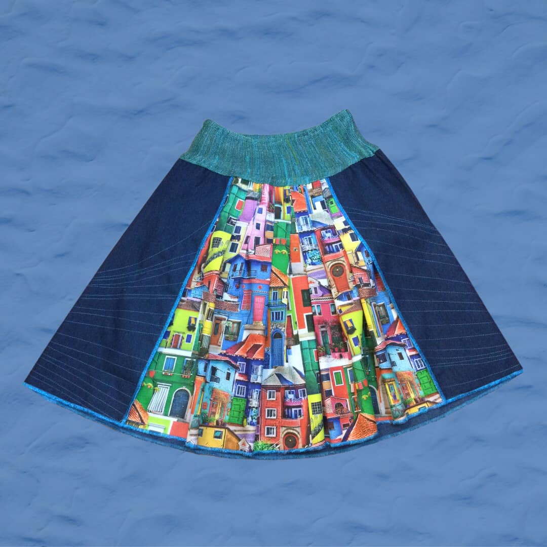 Piranske kučice, Aleksandra Ilić Unikatno jeans krilo, 90e št 40 (bočna mera 100-104) #unikatnamoda #darilozanjo #poletje2022