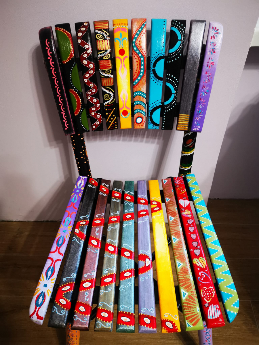 Silvija Petak Stražmešter: Made in Yugoslavia (piše na dnu) Ja ove nigde više vidla nisam! Drvene, teške, jednostavne ali simpa. Te reših da ih malo uveselim. Šmirgla, šmirgla, šmirgla, pa biocid za svaki slučaj jer je bilo nešto rupica pa osnovna crna boja i onda udri, maži, crtaj, boji, malo šablona, malo slobodne ruke, puno boja, četkica i markera i na kraju saten lak radi zaštite. Sve su boje na vodenoj bazi. Imam još jednu koja čeka da se uveseli, ali da li ću umeti da potrefim isto predstave nemam. Nadam se da vam se sviđa... https://www.facebook.com/groups/majstordomusvom/