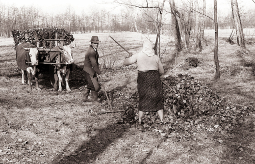 foto: grabloje listja v šumah ob Dravi, leta 1959, avtor: Jože Gal