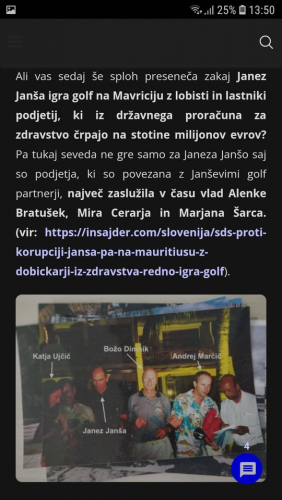 Janez Janša je bil po navedbah portala necenzirirano najmanj dvakrat na golf počitnicah na otoku Mauritius v Indijskem oceanu z lobistom Božom Dimnikom in Andrejem Marčičem. Oba sta že vrsto let med najvplivnejšimi in največjimi dobavitelji v slovenskem zdravstvu. Marčič je lastnik in direktor IT podjetja Marand, ki je v zadnjih 20 letih skupaj s povezanimi družbami samo s proračunskimi porabniki ustvarilo več kot 100 milijonov evrov prihodkov.