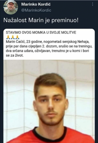 Ode jos jedan mladi sportas... Iznenada, a kako drugacije? "Uzrok smrti nije naveden". Naravno da nije jer moraju zataskavat posljedice cijepljenja. Koliko ih treba umrit da ovi drugi progledaju...uh!