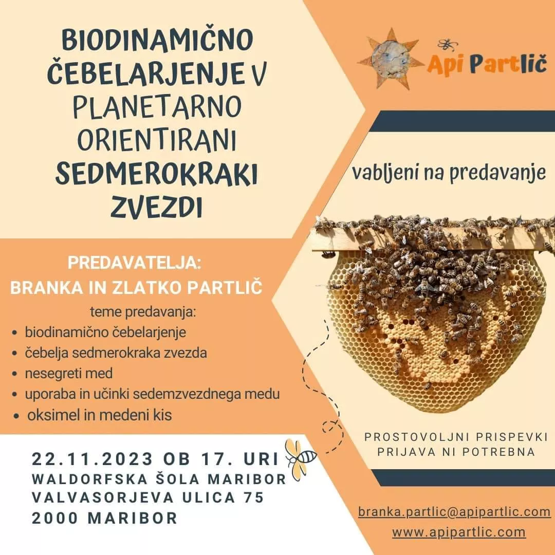 To je na kratko o čebelji sedmerokraki zvezdi in sedemzvezdnem medu. Več boste lahko slišali na najinem predavanju 16.11. ob 17 uri Celju na Šoli za hortikulturo in vizualne umetnosti Ljubljanska cesta 97 in 22.11. ob 17 uri v Mariboru na Waldorfski šoli Valvasorjeva ulica 75 . Več pa na apipartlic.com