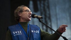 (https://www.prebujanjezavesti.si/slovenski-prostor/kdo-sluzi-globoki-drzavi/ ) in v stilu nevrolingvističnega programiranja, v občinstvo zasidral specifično sporočilo, ki ga večina ni zaznala. V prvem delu svojega nagovora je omenil ”predpise o prezračevanju objektov”.