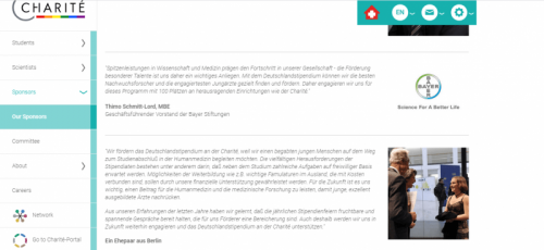 Charite in njihov sponzor Bayer (vir: https://nachwuchs.charite.de/en/sponsors/our_sponsors/ )