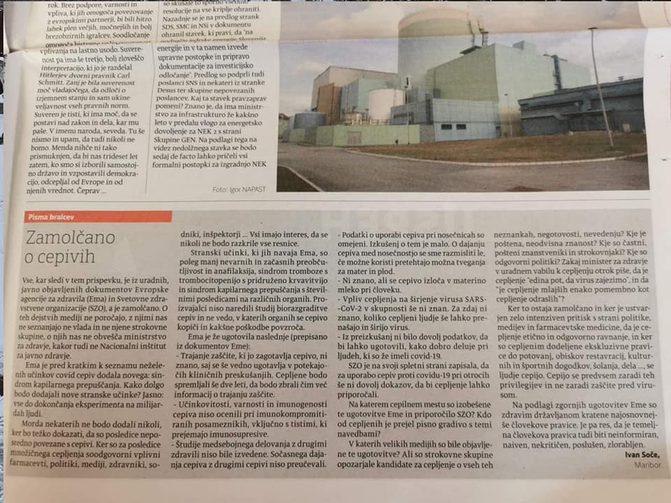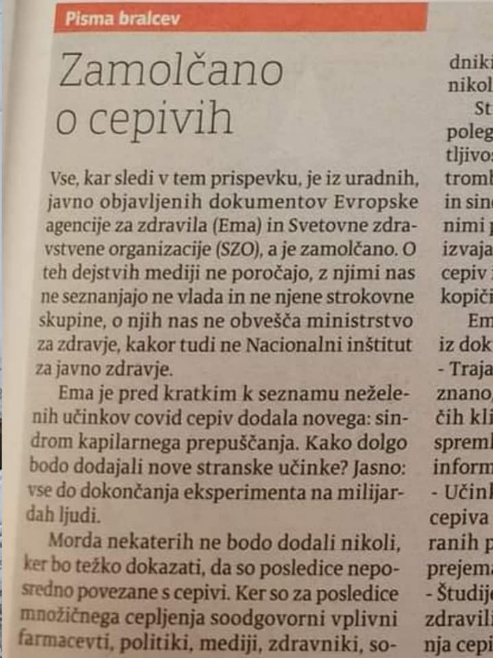 Kako preroško sem zapisal v eni svojih objav: »Farmacevtska medicina je očitno zagospodarila nad državo in mediji. V nekaterih državah so začeli kazensko preganjati nasprotnike obveznega cepljenja. Ne zadoščajo več denarne kazni za neposlušne starše, visoke kazni čakajo vse, ki nasprotujejo medicinsko-farmacevtski industriji – tudi neposlušne zdravnike, znanstvenike in druge strokovnjake. Uspelo jim je spreti starše: tiste, ki jih je upravičeno strah cepljenja in tiste, ki jih je neupravičeno strah necepljenih.«