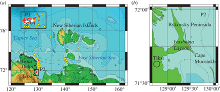 V letih 2011 do 2013 so Rusi (I. Semiletov, N. Šahova) s sonarjem in globinskim vzorčenjem vode pregledali dve 6.400 in 2.500 km2 veliki območji zahodno od Novosibirskih otokov. Prvih 6.400 km2 so dejansko posamezni segmenti v 33.000 km2 velikem pravokotniku, približno 200 km stran od izliva reke Lene v morje.