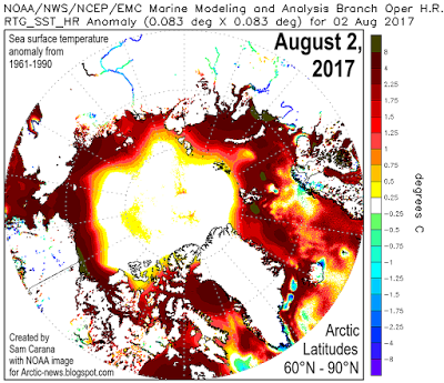 Primerjava temperaturnih anomalij površine arktičnih morij za avgust 2017 s prejšnjimi leti kaže splošno povečevanje teh temperatur, vendar so vode ob izlivu Lene še vedno hladnejše. To lahko pomeni, da višje površinske temperature večine ESAS omogočajo tudi več dotoka sončne in toplogredne energije v vodno plast in večje taljenje permafrosta na dnu, kot pa je bilo izmerjeno z vrtanjem.