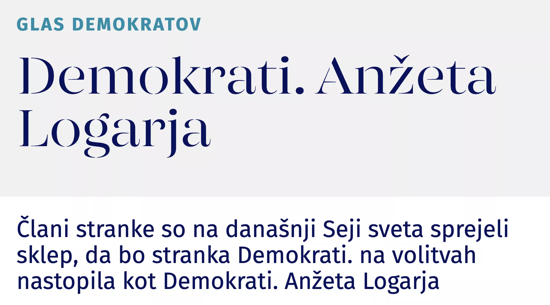 Stranka Demokrati je včeraj sporočila, da bo na volitvah nastopila pod novim imenom - Demokrati. Anžeta Logarja. Ne, ne gre za tiskarsko napako ali marketinški eksperiment, temveč za zavestno politično sporočilo, da se bo v Sloveniji še ena stranka tudi formalno poistovetila z enim samim človekom. V času, ko se slovenska politika ogreva za marčne parlamentarne volitve leta 2026, smo priča potezi, ki bi morala pri vsakomur, ki mu je mar za demokracijo, sprožiti resen refleks odpora.