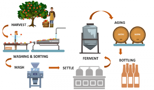 Sedaj pa vam bomo predstavili postopek izdelave omenjene tekočine. Naj poudarimo, da se vse skupaj začne z obiranjem jabolk. Kot smo že omenili, morajo biti jabolka obrana v ravno pravem, primernem času, saj morajo biti optimalno zrela, sočna in sladka. Tista jabolka, ki še niso zrela, največkrat spodbudijo z besedami »Kod se obiraš?« Nato sledi skupinsko umivanje in mletje teh sadežev. Zmleta jabolka se sprešajo, s tem pa nastane svež, okusen jabolčni sok. Vendar pozor, to je šele začetek! Jabolčni sok je namreč potrebno pasterizirati in shraniti v rezervoarjih za fermentacijo. Dodati pa je potrebno tudi kvasovke, ki v procesu fermentacije pretvorijo naravne sladkorje iz soka v alkohol. Zanimivo, kajne? Po zaključeni fermentaciji je potrebno odstraniti kvas in kot rezultat nastane okusni Jabolčni tat.