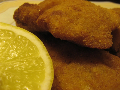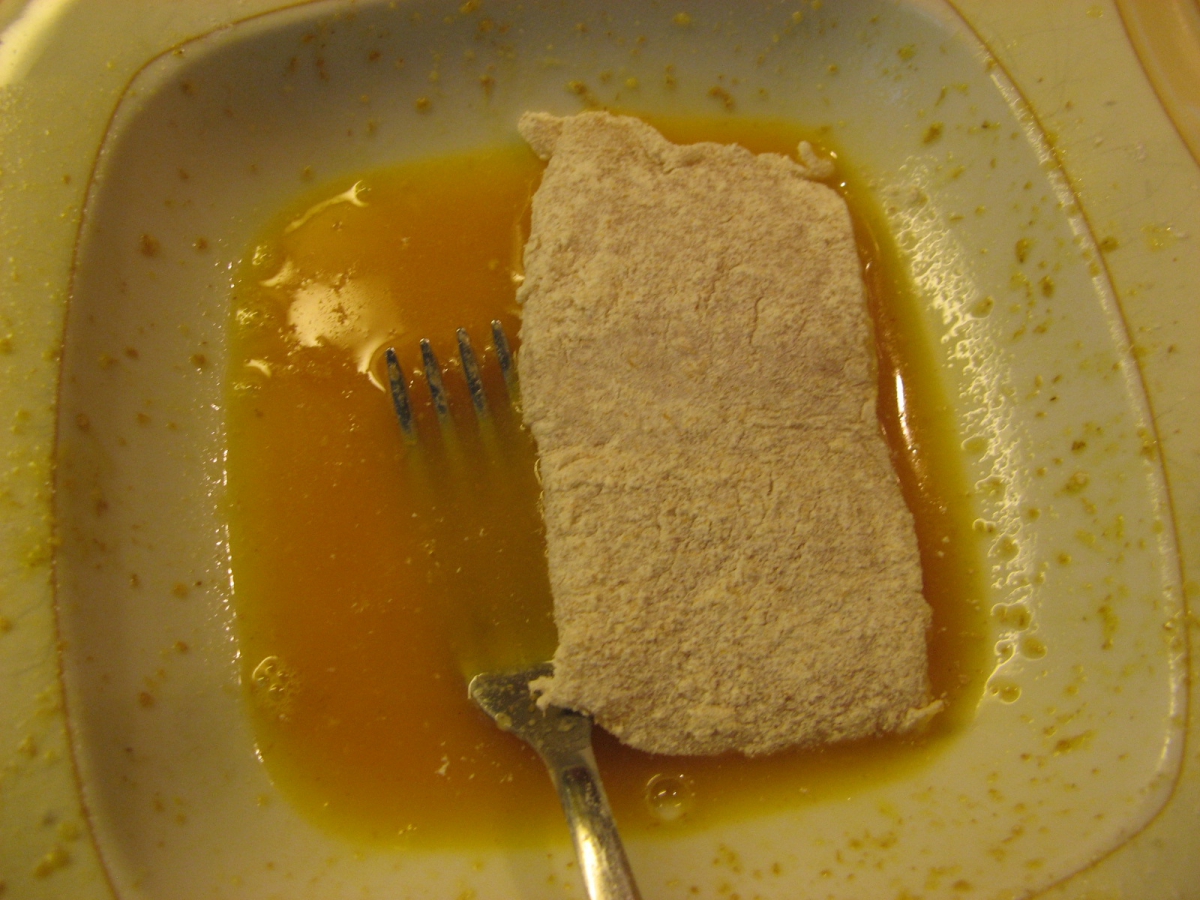 Jajce skupaj s soljo stepemo v krožniku. Na drug krožnik damo moko, na tretjega drobtine. Ribje fileje operemo, osušimo in narežemo. Najprej jih pomokamo, nato damo v jajce, nazadnje pa še v drobtine. Drobtine z rahlimi pritiski učvrstimo. Kose polagamo v segreto olje in pečemo do zlatorumene barve. Ponudimo z limono zraven ponudimo tudi prilogo.