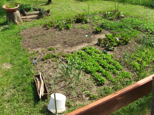 Na sliki več različnih solat in ostalih pridelkov na vrtu.