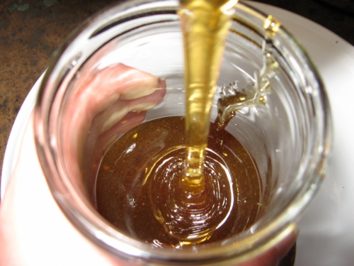 Ker je bilo prvo letošnje točenje smo nekaj medu dali kar v kozarce za domačo uporabo.