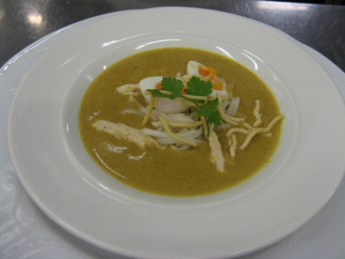 3. skupina je pripravila juho pod vodstvom Oliver Esser Soe Thet in sicer Kokosova juha s piščancem in riževimi rezanci, to pa je fotografija: