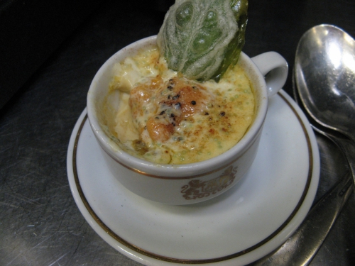 4. skupina je pripravila toplo predjed pod vodstvom Tony Khoo in sicer Gosja jetra z morskimi ježki in omako miso, jed pa je takšna: