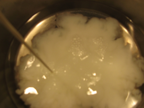 Posodo operemo z vodo, da preprečimo prijemanje in s tem žganje mleka na dno posode.