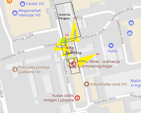 Iz vstopnega kota, dolžine strelčeve roke (recimo 50 cm), dolžine cevi pištole z dušilcem (recimo 25 cm) in oddaljenosti ustja dušilca od glave (najmanj 30 cm po mnenjih izvedencev), dobimo najmanjšo razdaljo med očmi strelca in tarčo, to je 105 cm.