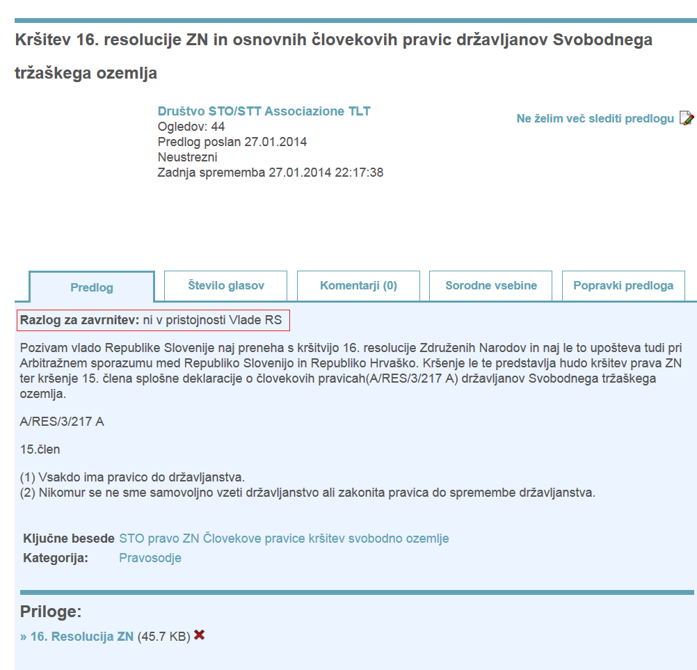 Sprašujem se ali je to malomarnost oz. neznanje moderatorja portala ali pa »cenzura« predloga. Seveda to je šele začetek boja za legitimnost Svobodnega ozemlja in legitimnost državljanov STO.