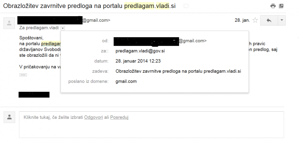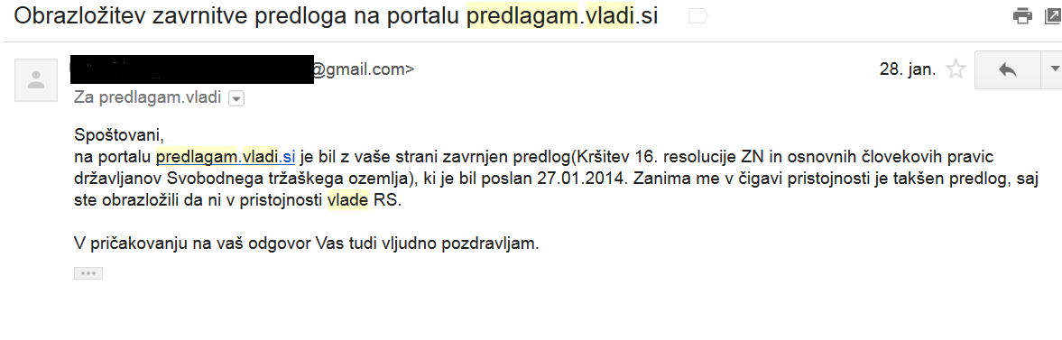 Obrazložitev za zavrnitev predloga pa je bila absurdna, saj piše, da to ni v pristojnosti Vlade RS.