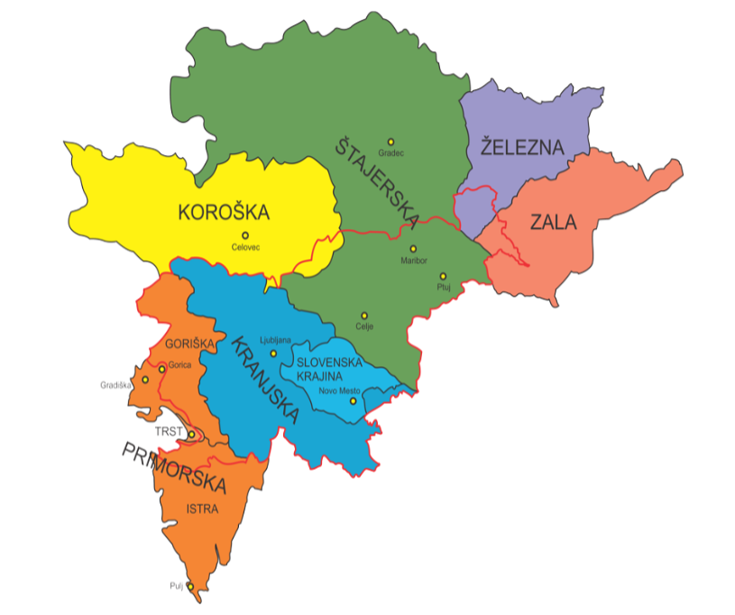 Zgodovina oblikovanja prostora govori o različnih fazah nastajanja in oblikovanja ekonomsko-politične, religiozne in kulturno-jezikovne krajine. V obdobju Karla Velikega so južno mejo oblikovale mejne krajine Vzhodna, Karantanska, Podravska, Savinjska, Kranjska, Istrska, Furlanska in Veronska. Znotraj mejnih krajin so bile grofije Steyr, Aniška, Eppensteinska, Leobenska, Muriška in Pitenska ter Vojvodina Koroška. Pogodbe med mejnimi grofi in grofi ter plemstvom so v desetem in enajstem stoletju izoblikovale dežele, ki so po imenu in večinoma tudi obsegu ostale identične do danes: grofija Steyr je postala kronovina oz. dežela Štajerska, Kranjska krajina je postala kronovina oz. dežela Kranjska, Vojvodina Koroška je postala kronovina oz. dežela Koroška, najkasneje se je izoblikovala dežela Goriška in mesto Trst. Pri tem se je dežela Kranjska delila še na manjše entitete, ki so se obdržale: Gorenjska, Dolenjska in Bela krajina, Notranjska. Vse dežele so za potrebe obrambe v času turških vpadov razdelili na okrožja in tako je imela dežela Štajerska pet (Judenburško, Bruško, Graško, Mariborsko in Celjsko okrožje), dežela Kranjska tri (Ljubljansko, Novomeško in Postojnsko okrožje), dežela Koroška dve (Beljaško in Celovško okrožje) in Goriška eno (Goriško okrožje) s svobodnim mestom Trst (stanje 1794. leta – gl. ilustracija, dostopno, splet: https://sl.wikipedia.org/wiki/Notranja_Avstrija#/media/Slika:AvI_Provinz_Innerösterreich.jpg).