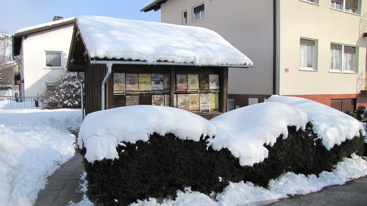 Domači čebelnjak v snegu 2018