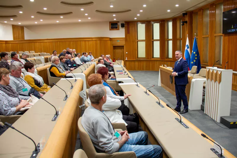 Ljubljana, 15. februar 2024 – Državni svetnik David Klobasa je gostil sprejem upokojenk in upokojencev v Državnem svetu. Zbrane je nagovoril predsednik Državnega sveta Marko Lotrič, ki je uvodoma predstavil vlogo in delo Državnega sveta ter izpostavil aktivnosti VII. mandata. Zbranim se je pridružil tudi državni svetnik Danijel Kastelic.