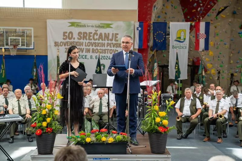 Brežice, 8. junij 2024 – Predsednik Državnega sveta RS Marko Lotrič je bil slavnostni govornik na 50. tradicionalnem srečanju slovenskih lovskih pevskih zborov in rogistov, ki je tokrat potekalo v Brežicah.