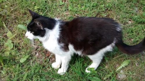 Tale prijazni muc je bil najden na parkirišču pri Koči na Gozdu. Star je ocenjeno 6-8 mesecev.