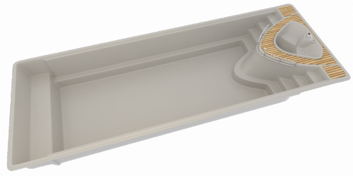Poleg velike plavalne površine, vsebuje tudi whirlpool za 2 osebi, integriran v sam kalup bazena. Svetovna novost, ki svojo obliko in tehnične rešitve črpa iz sveta jaht.