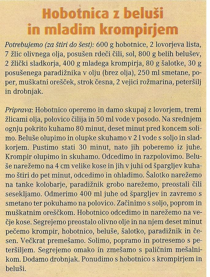 Hobotnica z beluši in mladim krompirjem